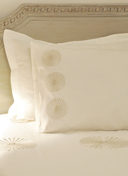 Güneş Desen İşlemeli Çift Kişilik Nevresim Takımı, %100 Pamuk Saten, 4 adet yastık: 2 adet kenarları işlemeli, 2 adet düz kulaklı