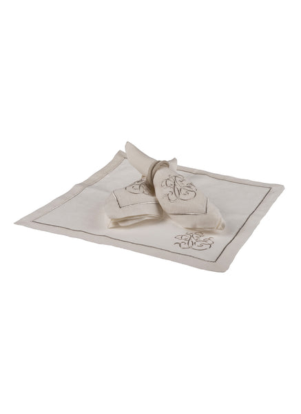 %100 Keten, Sarmalı Masa Örtüsü, 8 adet işlemeli Peçete